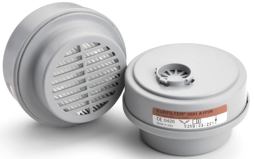* Bajonett csatlakozású A1P3R kombinált szűrőbetét 65 ° C feletti forráspontú szerves gázok és gőzök, illetve toxikus szilárd és folyékony részecskék ellen